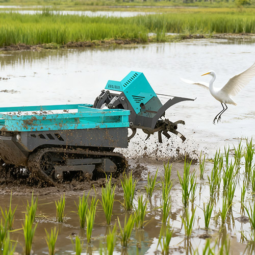 Designed for rotary tillage operations in hilly and mountainous areas, large farms, agricultural cooperatives with extensive land plots, as well as enclosed large greenhouse facilities. The machine can also transport goods when the upper cover is opened.